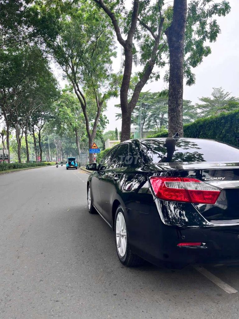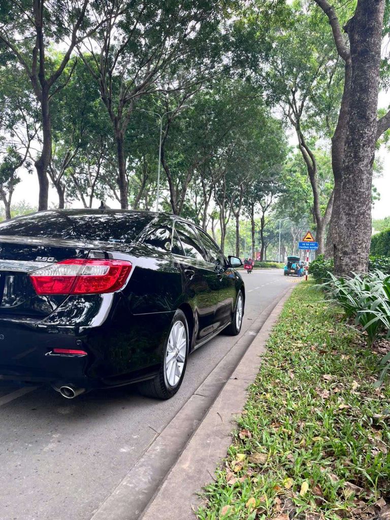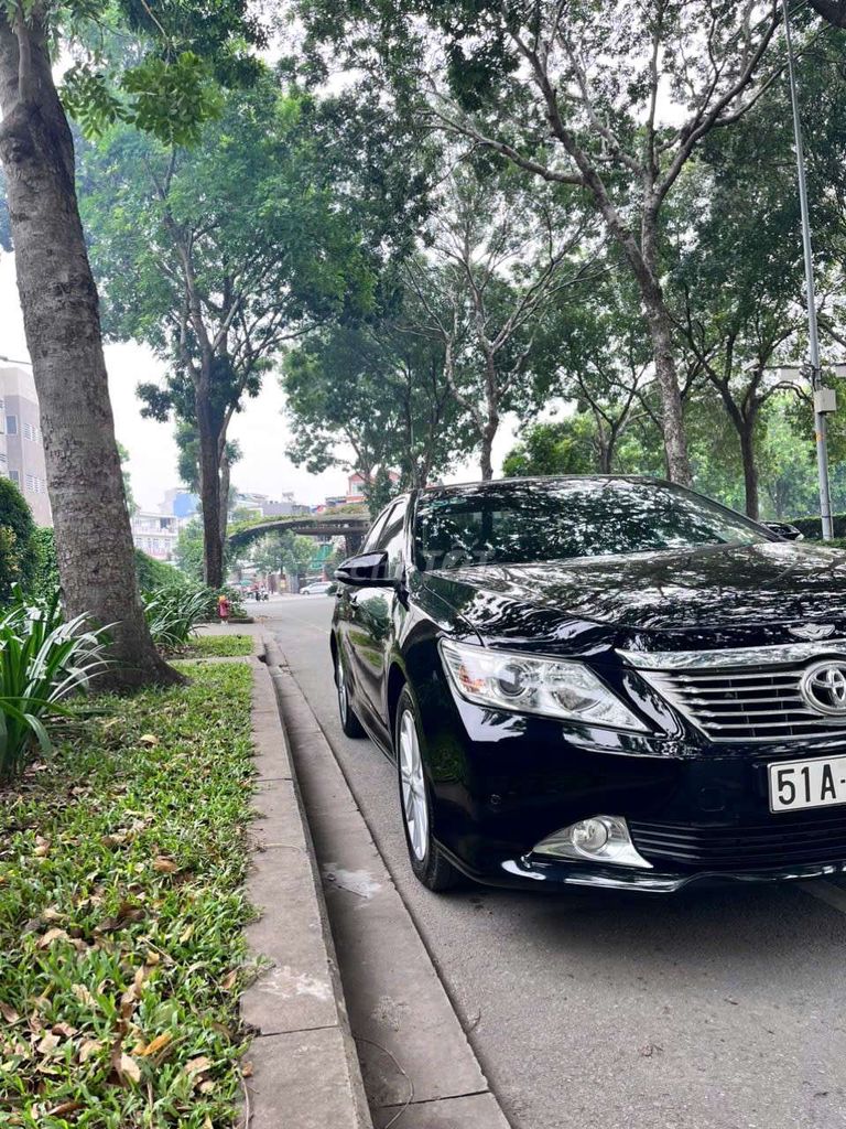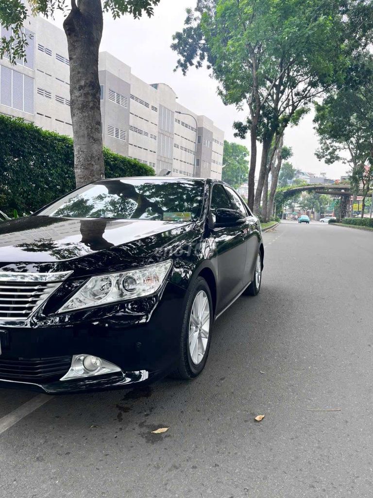 Toyota Camry 2.5G, xe màu đen sang trọng, sản xuất năm 2013. Mẫu xe sedan này nổi tiếng với sự bền bỉ, tiết kiệm nhiên liệu và không gian nội thất rộng rãi, mang đến trải nghiệm lái xe thoải mái và đẳng cấp.