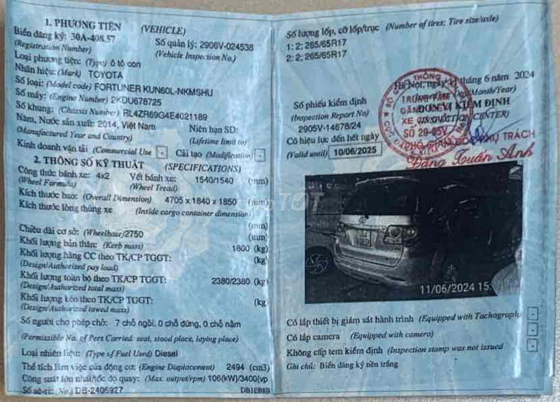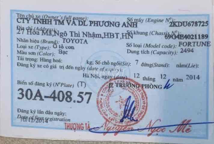 Fortuner máy dầu, số sàn | 2014 | Dầu Diesel | Số tay | 40.000 – 70.000 | 350 – 380 | Hà Nội, Tp.HCM |