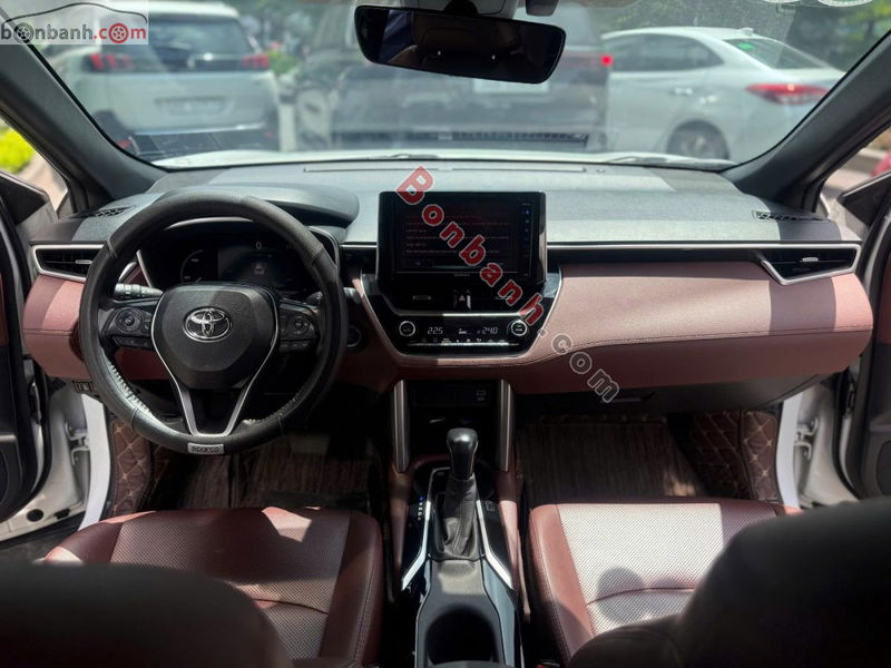Corolla Cross 1.8HV là phiên bản hybrid, được ưa chuộng nhờ tiết kiệm nhiên liệu và vận hành êm ái. Màu ngoại thất trắng và nội thất nâu đỏ cũng là các lựa chọn phổ biến, tăng tính thanh khoản của xe.