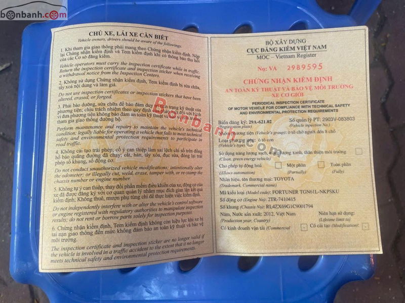 - Thị trường xe cũ: Toyota Fortuner bản 2.7V 4×2 AT model 2012 thường có giá dao động từ 320 triệu đến 360 triệu đồng tùy tình trạng, xuất xứ, và vị trí bán.
