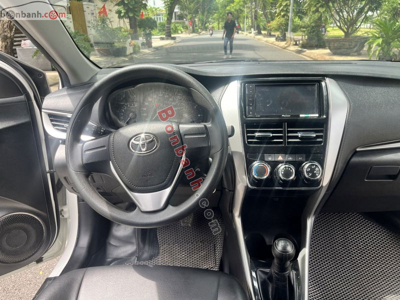 Xe Vios bản 1.5E số sàn, động cơ 1.5L xăng, màu trắng, nội thất đen, 5 chỗ ngồi, dẫn động cầu trước, thuộc phân khúc sedan cỡ B được ưa chuộng tại Việt Nam, đặc biệt cho mục đích kinh doanh dịch vụ hoặc chạy taxi công nghệ.